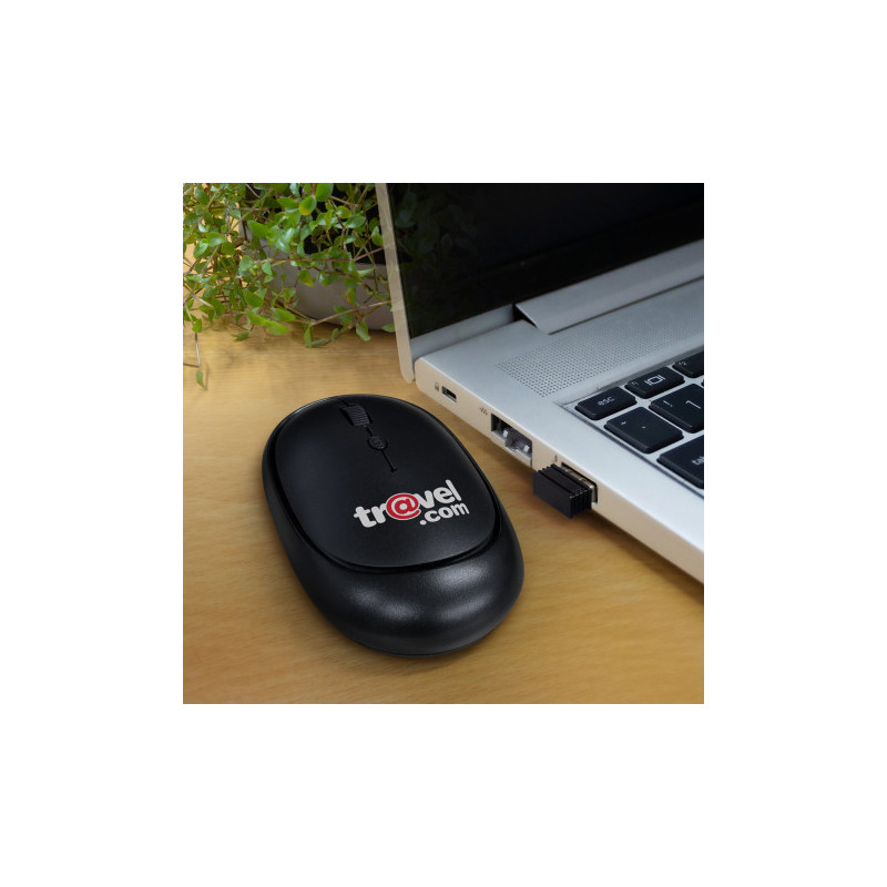 Absolutely! Before we proceed with full production, our design team will create a mock-up of your branded Astra Wireless Travel Mouse. This ensures your conference products look their best and meet your expectations.