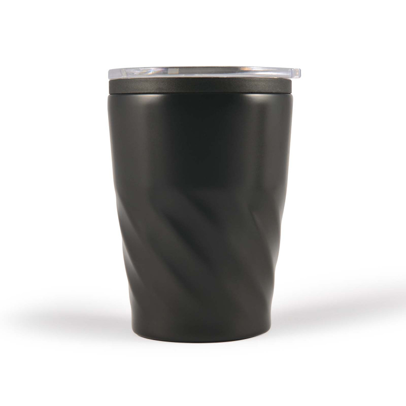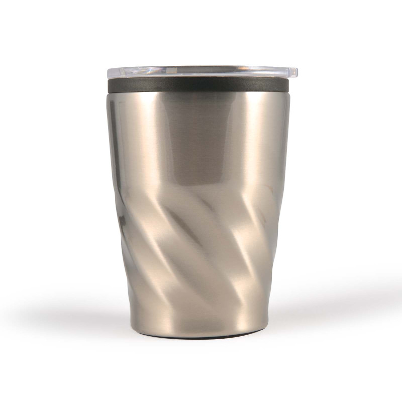 350ml Double wall stainless steel cup with handle lid and flip piece. Suitable for hot or cold drinks with secure fitting comfort lid. BPA free. Packed in a kraft gift box. For logo longevity hand washing is recommended.