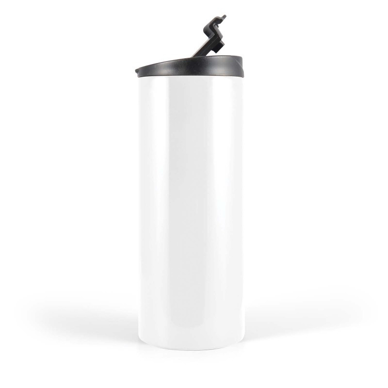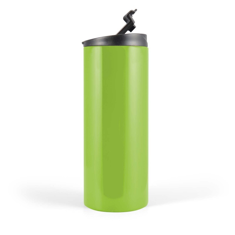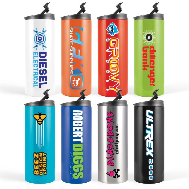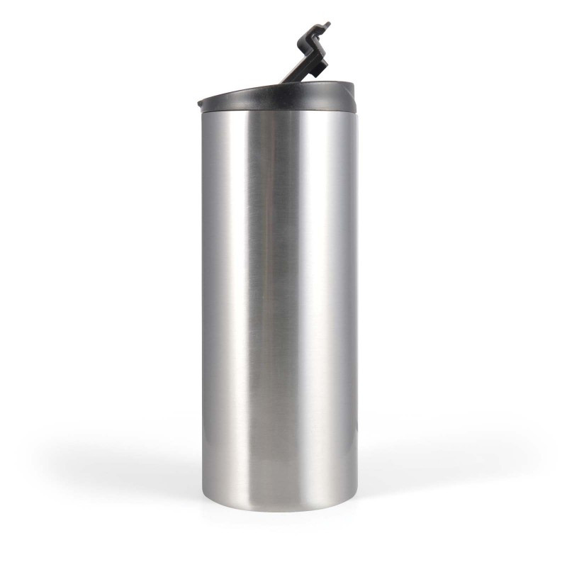350ml Double wall stainless steel cup with handle lid and flip piece. Suitable for hot or cold drinks with secure fitting comfort lid. BPA free. Packed in a kraft gift box. For logo longevity hand washing is recommended.