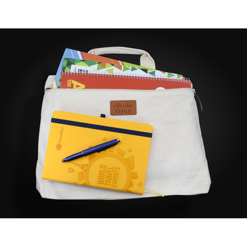How to Request a Sample: If you’re interested in the Calico Conference Bag 28cm x 37cm x 6cm as a branded or decorated conference product, just reach out to us. Please note that we do charge for samples and therefore suggest that you request and quote and review that before requesting samples for evaluation. Our expert team will assist you with your sample request and ensure it aligns with your needs.