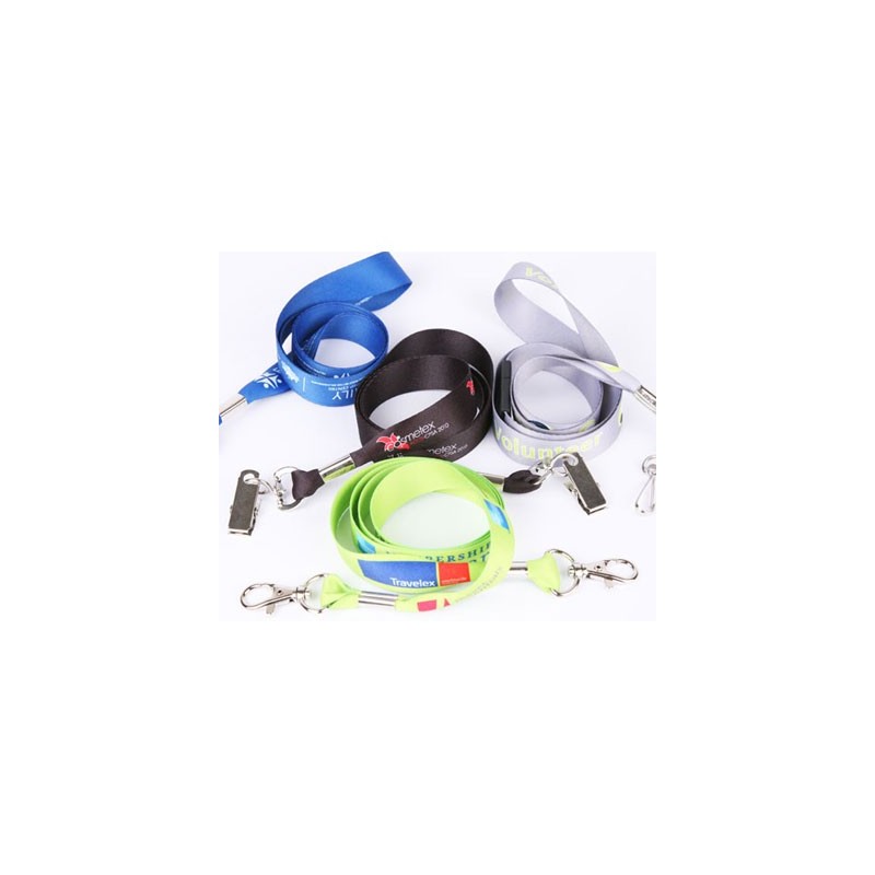 Our full colour lanyards represent the latest in lanyard technology. Printed in house; there are no limits on print or fabric colours. Even complex graphics print beautifully. Printing will not crack or peel because as it is sublimated into the fabric. You have the choice of a carabineer, alligator clip, swivel hook,keyring or mobile phone loop. Optional extras like safety breakaway and quickrelease also available. -