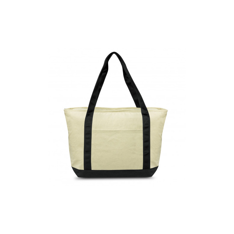 12oz Cotton canvas cooler with insulated PEVA lining. Front pocket for additional snacks.