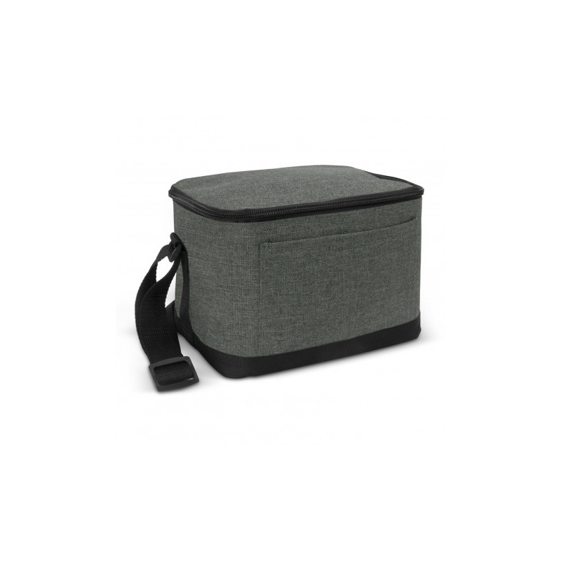 The Brisk 6 Can lunch cooler features a unique closure to secure your lunch while on the go. Made of non-woven material with a 210d front pocket and a foil lining. A plastic grab handle and flap that passes through and secures with a hook and loop closure.