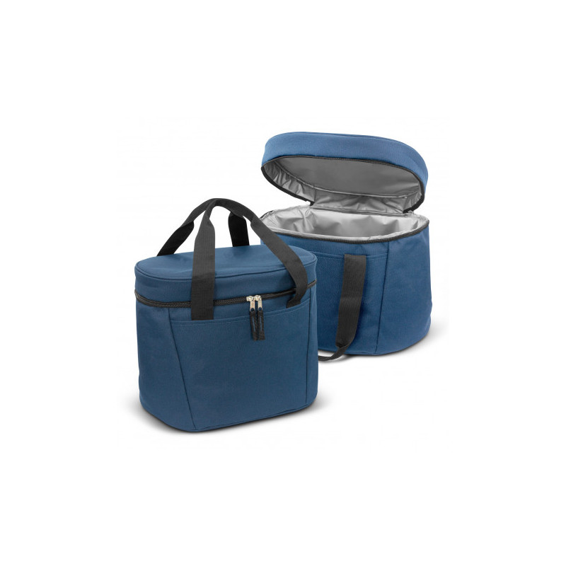 Robust large 18L cooler bag which is manufactured from 210D polyester with aluminium foil laminated PE foam insulation. It has a zippered top closure, reinforced woven handles and a large front slip pocket.