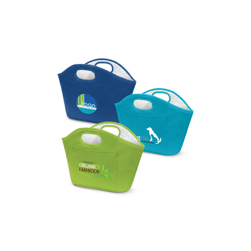 PEVA insulation. Main compartment with Velcro flap closure. Open front pocket. Carry handle. --Undecorated Stock Available in 5 Working Days--