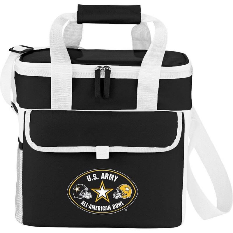 Heavy duty materials make the workmans pro cooler ideal for the toughest job. Zippered main compartment holds up to 24 cans. Unique hard hinge opening reminiscent of a tool bag.