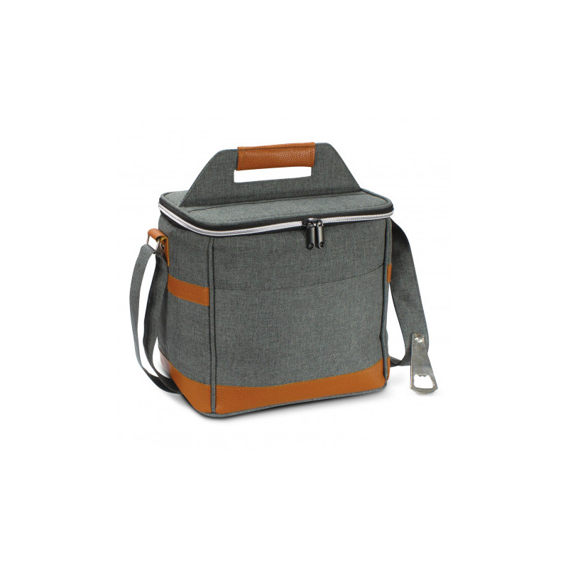 Large main zippered compartment holds up to 30 cans. Available in 2 colours.