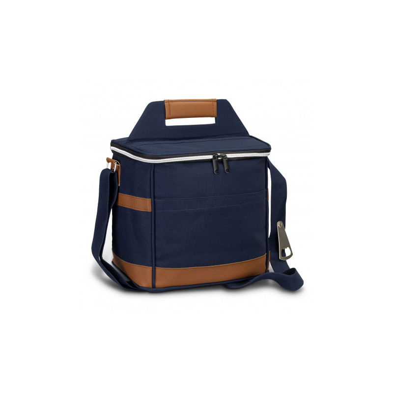 Robust large 18L cooler bag which is manufactured from 210D polyester with aluminium foil laminated PE foam insulation. It has a zippered top closure, reinforced woven handles and a large front slip pocket.