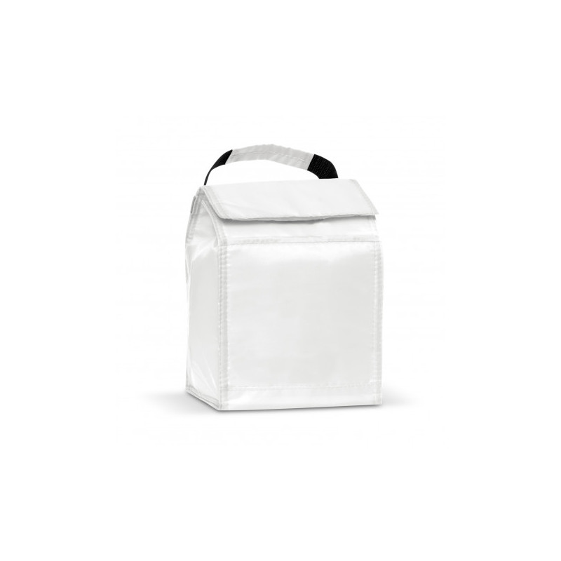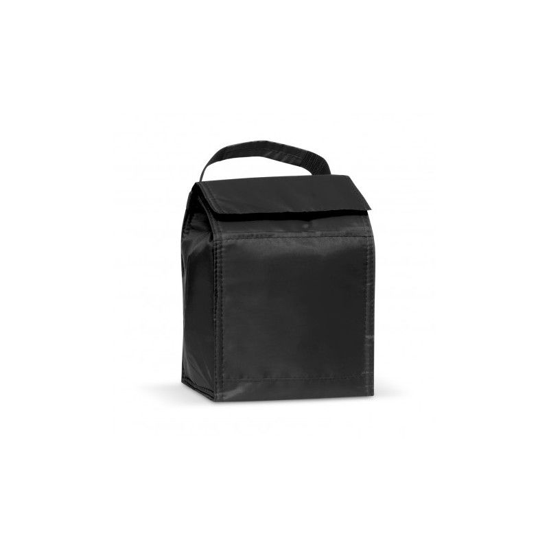 The Brisk 6 Can lunch cooler features a unique closure to secure your lunch while on the go. Made of non-woven material with a 210d front pocket and a foil lining. A plastic grab handle and flap that passes through and secures with a hook and loop closure.