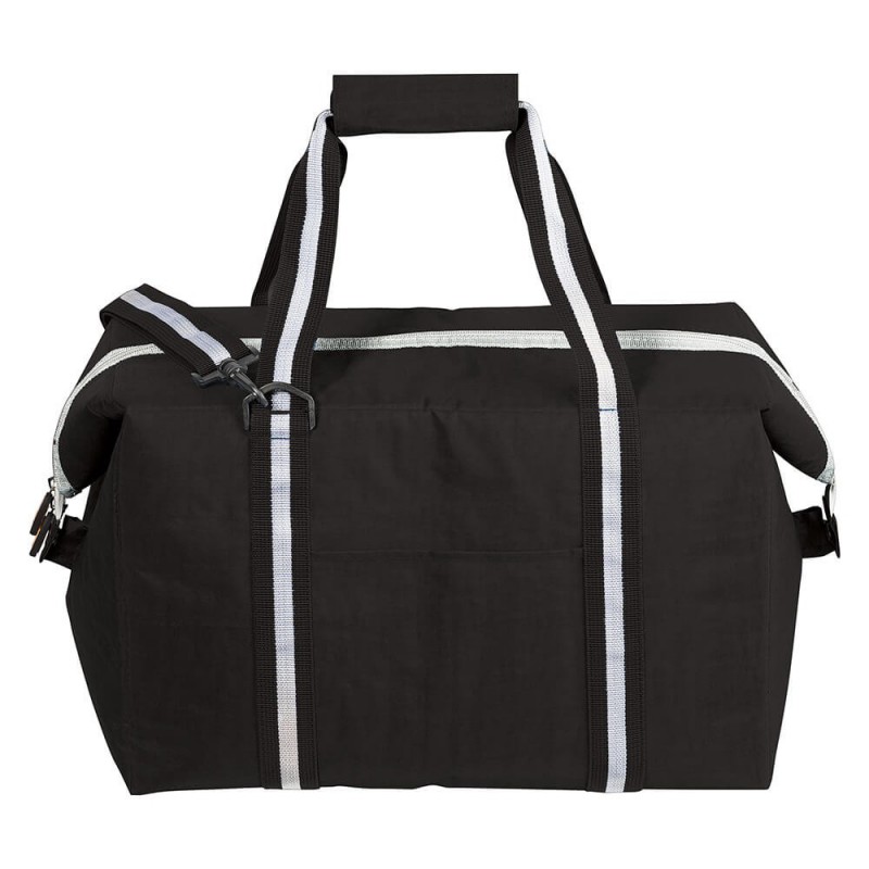 Large main zippered compartment holds up to 30 cans. Available in 2 colours.