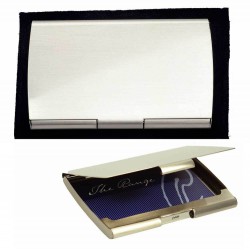 Business card holder with mirror finish. Holds approximately 10 business cards. Engraves tone-on-tone.