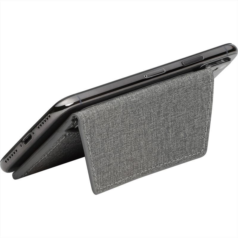 The Phone Holder with Card Wallet features a 2 in 1 functionality that can hold one credit or ID card and provides a built in grip that can be used when holding the phone or propped up. The adhesive tape on the back allows of easy application on flat-backed smart phones.