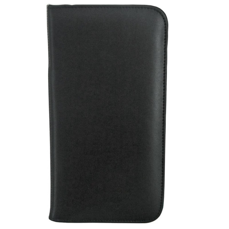 This sophisticated designed travel wallet is the ideal travel companion with multiple pockets, the wallet is able to store credit cards, papers, change and Features several other functional pockets. Microfibre.