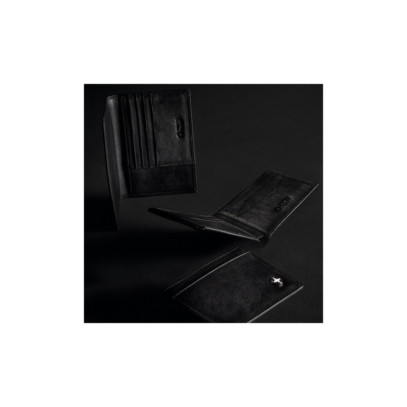 Very stylish travel accessory. Open main compartment for storing all travel documents. Multiple pockets for passport, tickets, itinerary, credit cards and business cards. Black leather.