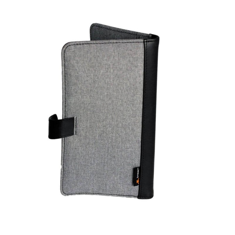 This sophisticated designed travel wallet is the ideal travel companion with multiple pockets, the wallet is able to store credit cards, papers, change and Features several other functional pockets. Microfibre.