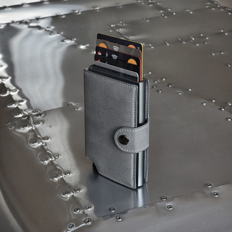Wally Carta is a secure (credit) card holder for the minimalists. It offers room from 6 to 10 cards (depending on the model) and has integrated RFID protection technology to keep your cards and personal information safe. RFID stands for Radio Frequency Identification. The aluminium interior of Wally blocks any radio waves so skimmers cannot get through to...