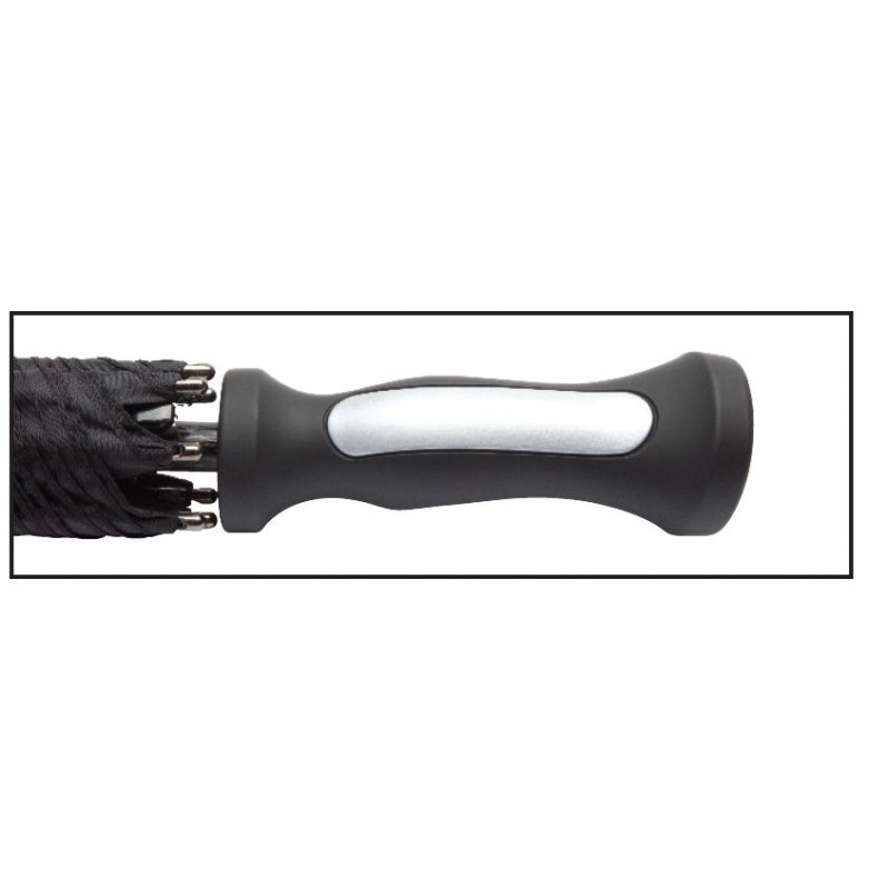 Innovative eight-panel umbrella that closes inside-out to leave a dry outer layer, keeping the user dry. Gemini has a soft-touch C-shaped handle for hands-free use and a twin-layer, 190T showerproof pongee canopy with 62cm ribs. It has an eight-rib fibreglass frame and a strong steel shaft.