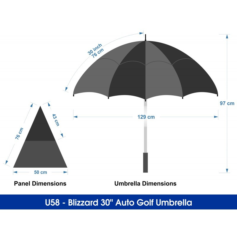 Production & shipping details for Blizzard 30 Auto Golf Umbrellas