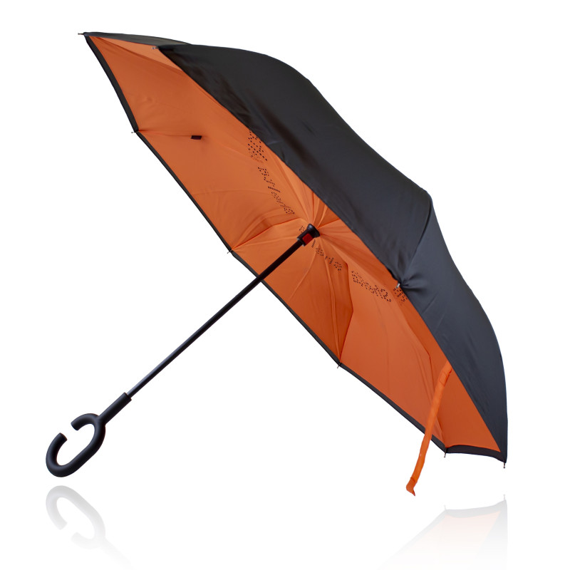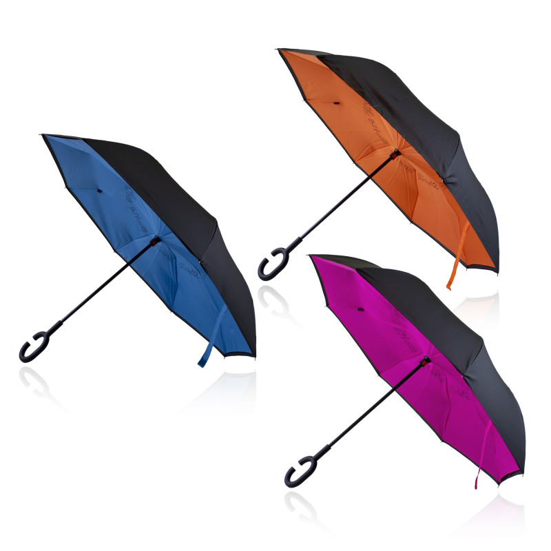 Innovative eight-panel umbrella that closes inside-out to leave a dry outer layer, keeping the user dry. Gemini has a soft-touch C-shaped handle for hands-free use and a twin-layer, 190T showerproof pongee canopy with 62cm ribs. It has an eight-rib fibreglass frame and a strong steel shaft.