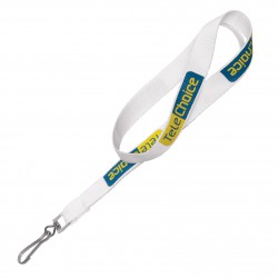 20mm wide polyester lanyard with a metal clip and a safety clip. It can be branded in one colour on one side.