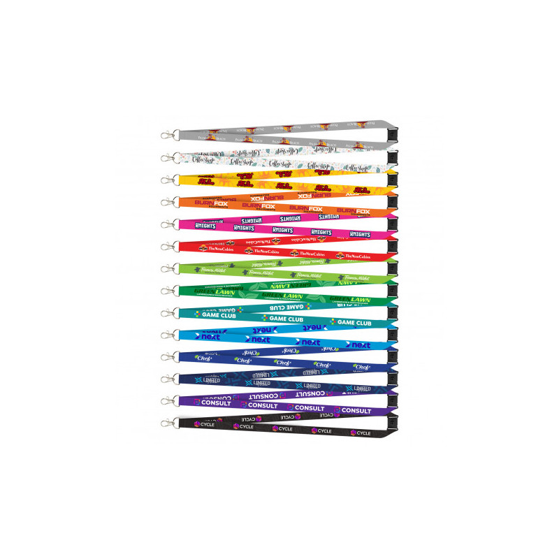 Our full colour lanyards represent the latest in lanyard technology. Printed in house; there are no limits on print or fabric colours. Even complex graphics print beautifully. Printing will not crack or peel because as it is sublimated into the fabric. You have the choice of a carabineer, alligator clip, swivel hook,keyring or mobile phone loop. Optional...