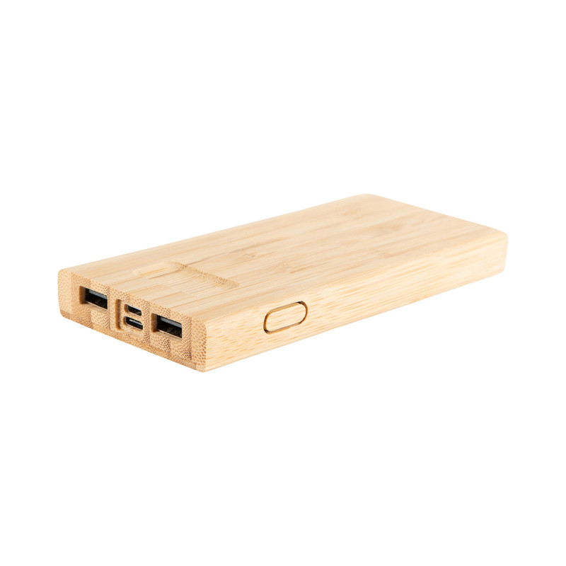 At our company, we offer a range of conference merchandise and products, including the Mills Bamboo Power Bank - 10000 mAh. The minimum order quantities (MOQs) vary depending on the product and how it's decorated—whether printed or otherwise.