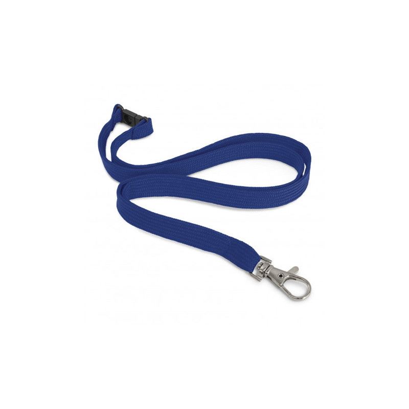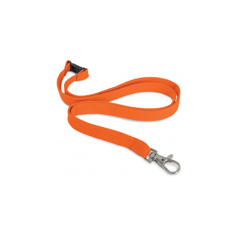 20mm wide polyester lanyard with a metal clip and a safety clip. It can be branded in one colour on one side.
