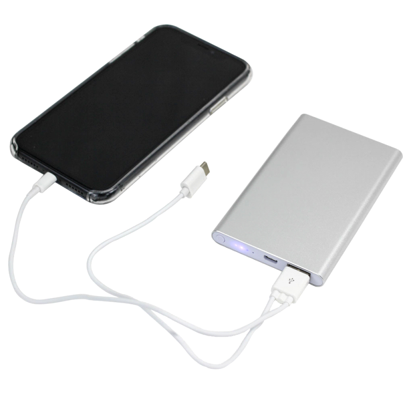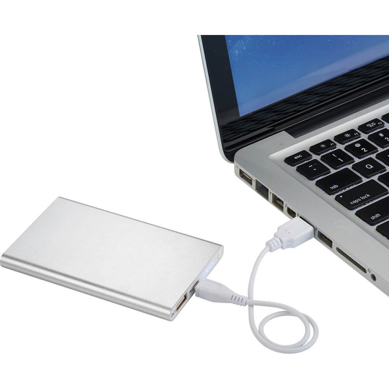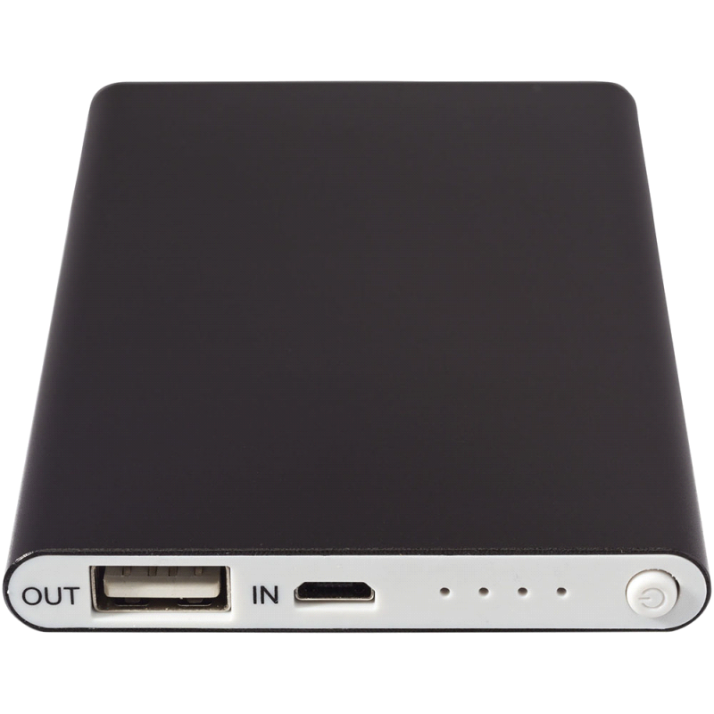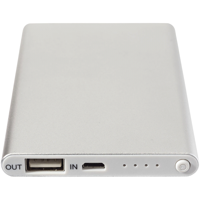 Thin 4000mAh power bank with a power gauge and a smart aluminium finish. The input power is 5V/1 Amp and the output power is 5V/1 Amp. It can be recharged in 5-6 hours from a USB port or a mains adapter. Comprehensive instructions and a Micro-B USB cable are included. An optional EVA carry case and a triple connector cable are available on request. Zion...
