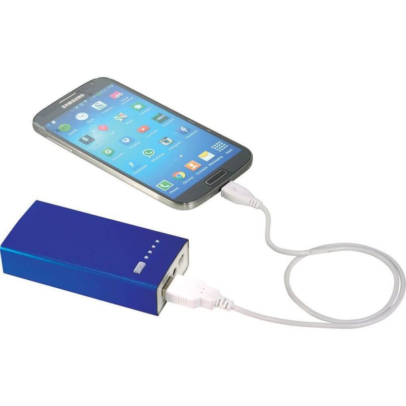 Rectangular shaped power bank with corded split ring from 2000 mAh Lithium-ion battery. Output - DC 5V / 1A (USB), Input - DC 5V / 750 mA (Micro USB). Built in IC chip prevents overcharging & short circuit. Charge time 2-3 hours, battery cycle life greater than 500 times. USB to micro USB cable included. It can be used to charge most of cell phones...