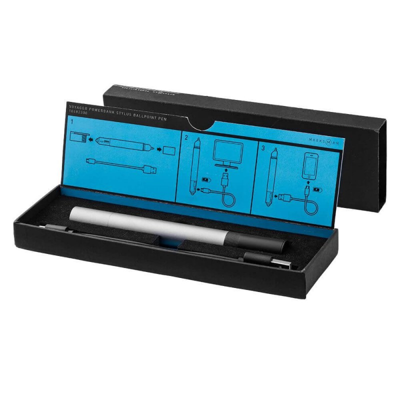 We know how important it is to see and feel a product before you buy, especially when ordering merchandise for conferences, for corporate and promotional gifts. We offer samples of our Marksman Voyager Powerbank-Stylus Ballpoint to help you make an informed decision.