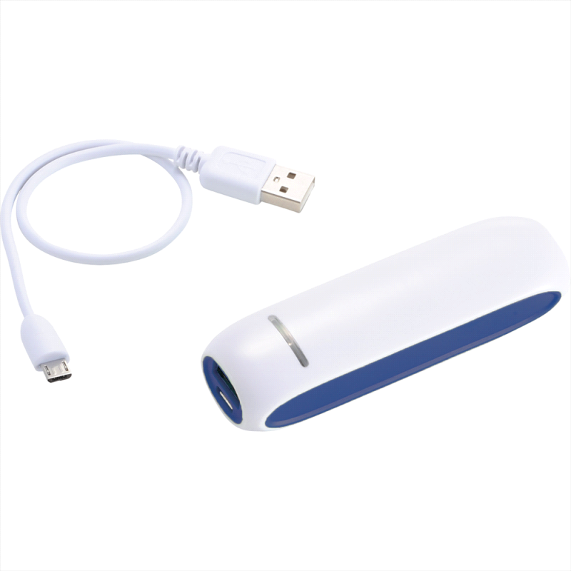 Rectangular shaped power bank with corded split ring from 2200 mAh Lithium-ion battery. Output - DC 5V / 1A (USB), Input - DC 5V / 750 mA (Micro USB). Built in IC chip prevents overcharging & short circuit. Charge time 2-3 hours, battery cycle life greater than 500 times. USB to micro USB cable included. It can be used to charge most of cell phones...