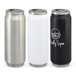 Ultra-modern 450ml, double wall vacuum insulated stainless steel drink bottle with a contemporary can-shaped design that stands out from the crowd. It has a secure screw on stainless steel lid which has a flip-out drinking valve with a straw. The white and black bottles laser engrave to a shiny steel finish and the stainless steel bottle laser engraves to...