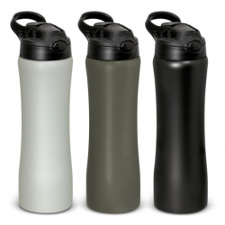 Sophisticated 800ml stainless steel drink bottle with a lacquered matt finish and a contoured design that ensures it is comfortable to hold for hands of all sizes. It has a secure screw on lid with a carry handle and a push-button activated drinking straw that locks away when not in use to protect it from dust and dirt. Duke is BPA-free and laser engraves...