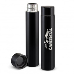 Stylish 500ml double wall, vacuum insulated stainless steel drink bottle with a gently curved design that is extremely comfortable to hold. It is BPA-free and will keep drinks cold for 24 hours or hot for up to 12 hours. Zircon has a secure screw on stainless steel lid and is presented in a black gift box or optional gift tube. The black bottle is laser...