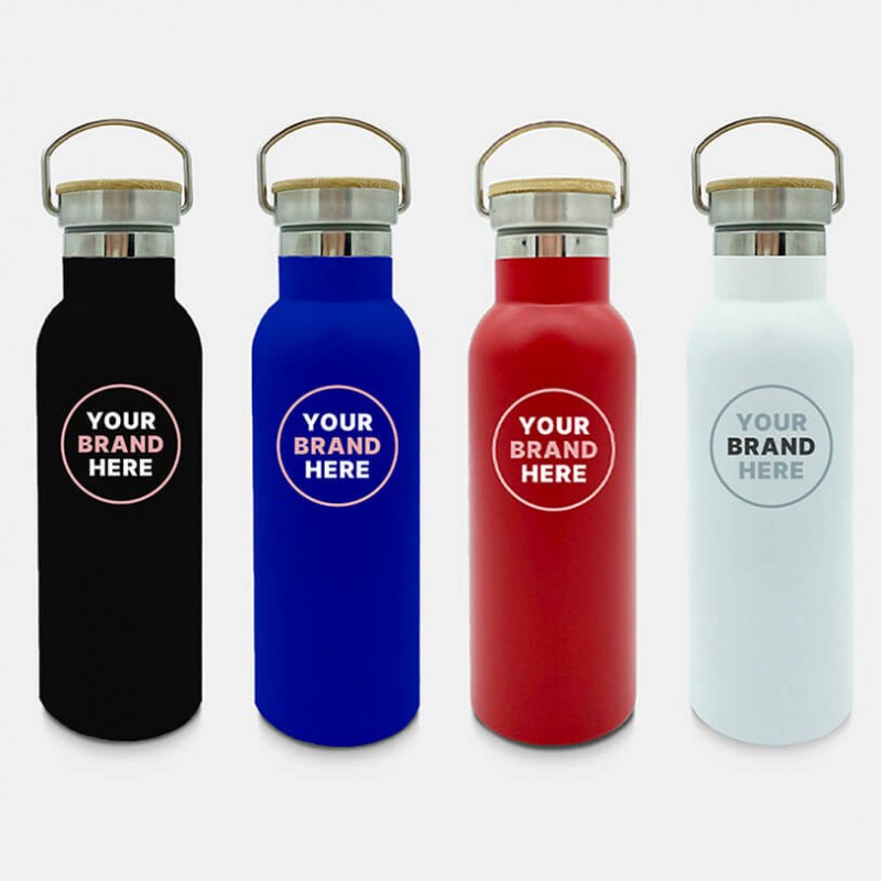 Impressive 650ml BPA-free double wall vacuum insulated stainless steel drink bottle which will keep drinks cold for 24 hours or hot up to 12 hours. It has a trendy screw on lid with a stainless steel carry handle that offers a prominent branding opportunity and is available in full stainless steel or with a bamboo veneer. Bamboo is a natural material that...
