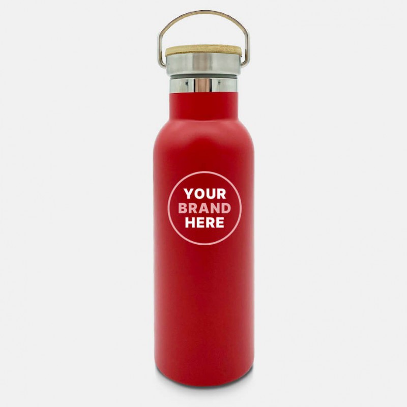Sophisticated 600ml aluminium drink bottle with a timeless design and a smart painted finish. It is BPA-free, has a secure bamboo screw on lid and it can be presented in an optional black gift box. Bamboo is a natural material which produces unavoidable variances in the grain pattern, colour and branding. This product is not dishwasher safe and...