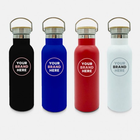 Impressive 650ml BPA-free double wall vacuum insulated stainless steel drink bottle which will keep drinks cold for 24 hours or hot up to 12 hours. It has a trendy screw on lid with a stainless steel carry handle that offers a prominent branding opportunity and is available in full stainless steel or with a bamboo veneer. Bamboo is a natural material that...