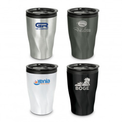 BPA-free 400ml double wall coffee cup which will keep drinks hot for longer. It features a radical twist patterned stainless steel outer wall and a polypropylene inner wall. Tornado has a secure plastic push on lid with a splashproof sliding closure and a soft non-marking base. The black, white and gunmetal cups laser engrave to a shiny steel finish and...