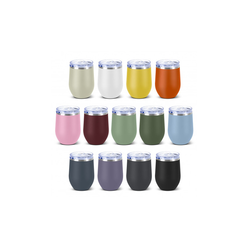 320ml curved double wall vacuum cup. Modern design. Will keep drinks hot or cold for about 3 hours. Push seal lid with sliding splash proof cover. BPA free stainless steel which is easy to keep clean. Available in a vibrant range of gloss colours. For logo longevity hand washing is recommended. Eco Credentials: Reusable, sustainable, and printed using...