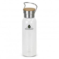 Classic 600ml borosilicate glass drink bottle. Borosilicate is lightweight, exceptionally strong and is shatter-resistant. The bottle features a secure screw on lid with a convenient carry handle and a natural bamboo panel. An optional gift tube is available for presentation.