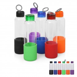 This single walled glass sports bottle comes with an outer silicone sleeve for protection. BPA free sipper. 600ml capacity.