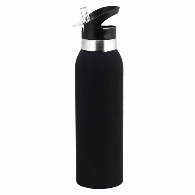 Deluxe 600ml stainless steel drink bottle that is vacuum insulated with a sleek design and a smart painted finish. It is BPA-free and features a secure stainless-steel screw-on lid which features a white polypropylene trim. It can be presented in a kraft gift box. The bottle is not dishwasher safe, and handwashing is recommended.