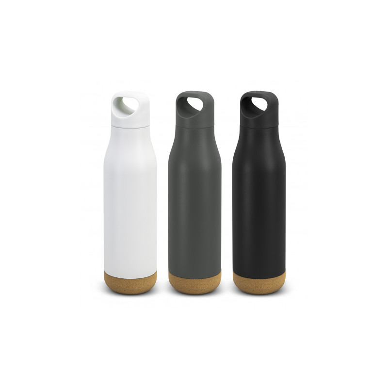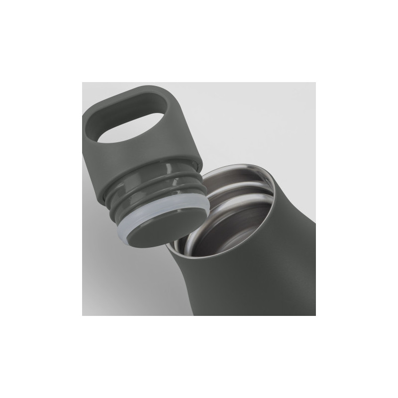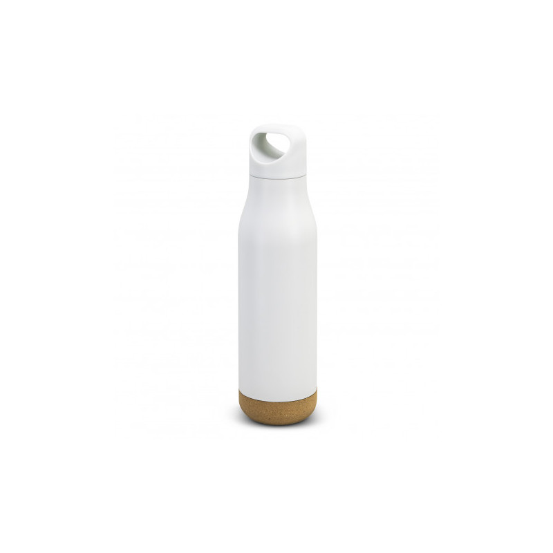 Deluxe 600ml stainless steel drink bottle that is vacuum insulated with a sleek design and a smart painted finish. It is BPA-free and features a secure stainless-steel screw-on lid which features a white polypropylene trim. It can be presented in a kraft gift box. The bottle is not dishwasher safe, and handwashing is recommended.