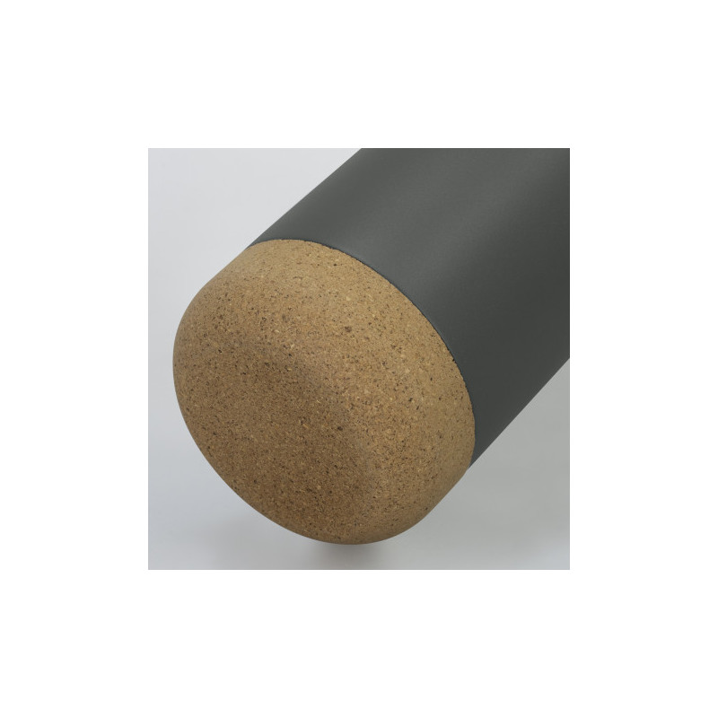 Stylish 350ml stainless steel vacuum insulated mug with a cork base and a tough powder coated finish. It has a transparent push on lid with a sliding closure and is presented in a kraft gift box.