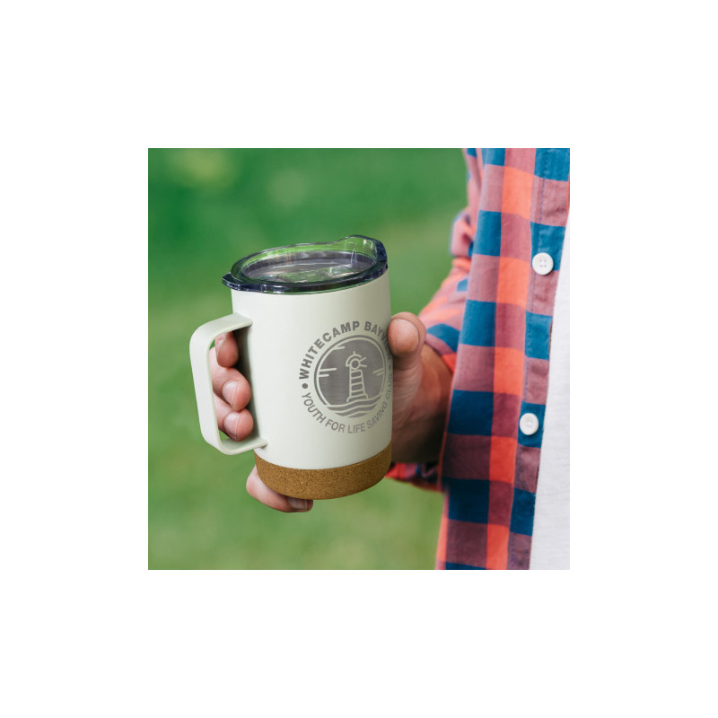 Lightweight 300ml coffee mug which is manufactured from BPA-free stainless steel which laser engraves to a natural etch. It features an aluminium carabiner handle to easily attach the mug to backpacks and bags, perfect for camping and day trips. This product is not dishwasher safe and handwashing is recommended.