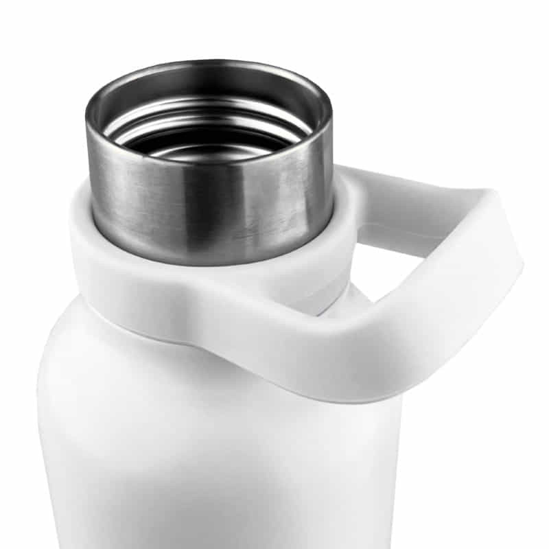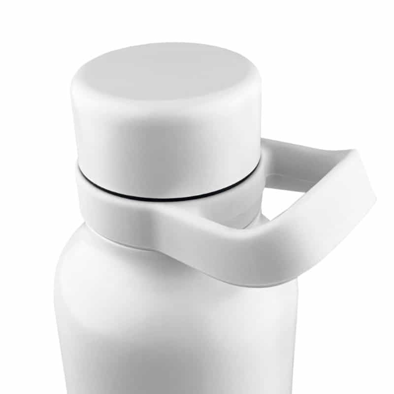 Robust 1L stainless steel, vacuum insulated drink bottle with a tough powder coated finish. The bottle features a screw on lid with a convenient carry handle and is presented in a black gift box.