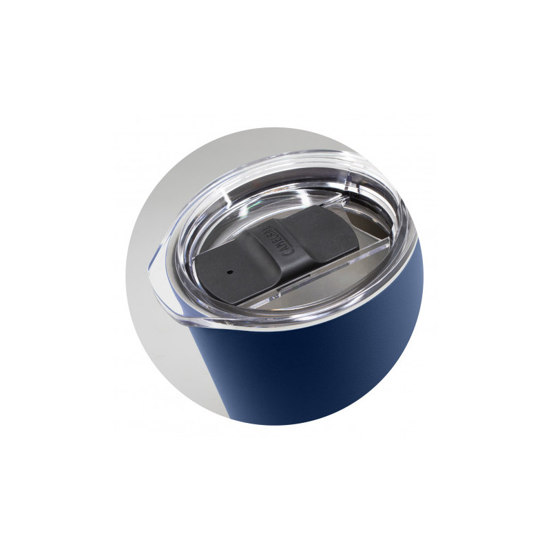 Stylish 350ml double wall, polypropylene and stainless steel coffee cup with natural bamboo base. Valetta features a translucent splash proof push-on, BPA free slider lid with a secure silicone seal.