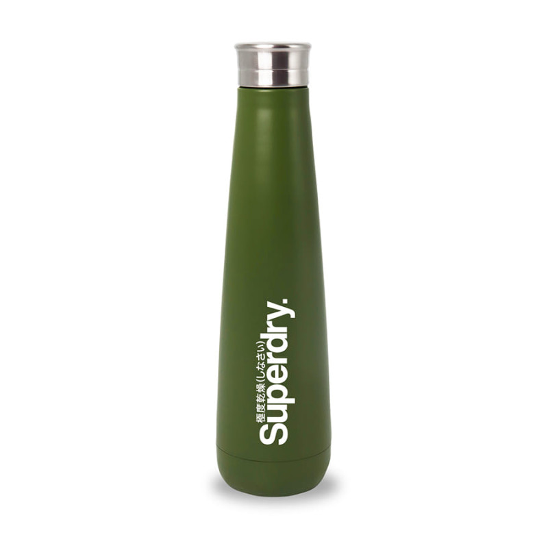 Deluxe 600ml stainless steel drink bottle that is vacuum insulated with a sleek design and a smart painted finish. It is BPA-free and features a secure stainless-steel screw-on lid which features a white polypropylene trim. It can be presented in a kraft gift box. The bottle is not dishwasher safe, and handwashing is recommended.