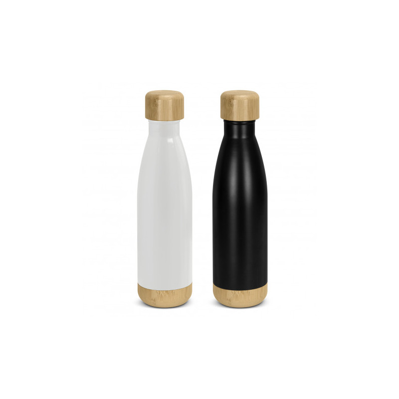 Modern 800ml single-wall, stainless steel drink bottle which has an extremely durable powder coated matt finish with a secure screw on natural bamboo lid. Pasadena offers a carry lid for easy transportation, it is BPA-free and laser engraves to a shiny steel finish. Bamboo is a natural material which produces unavoidable variances in the grain pattern,...