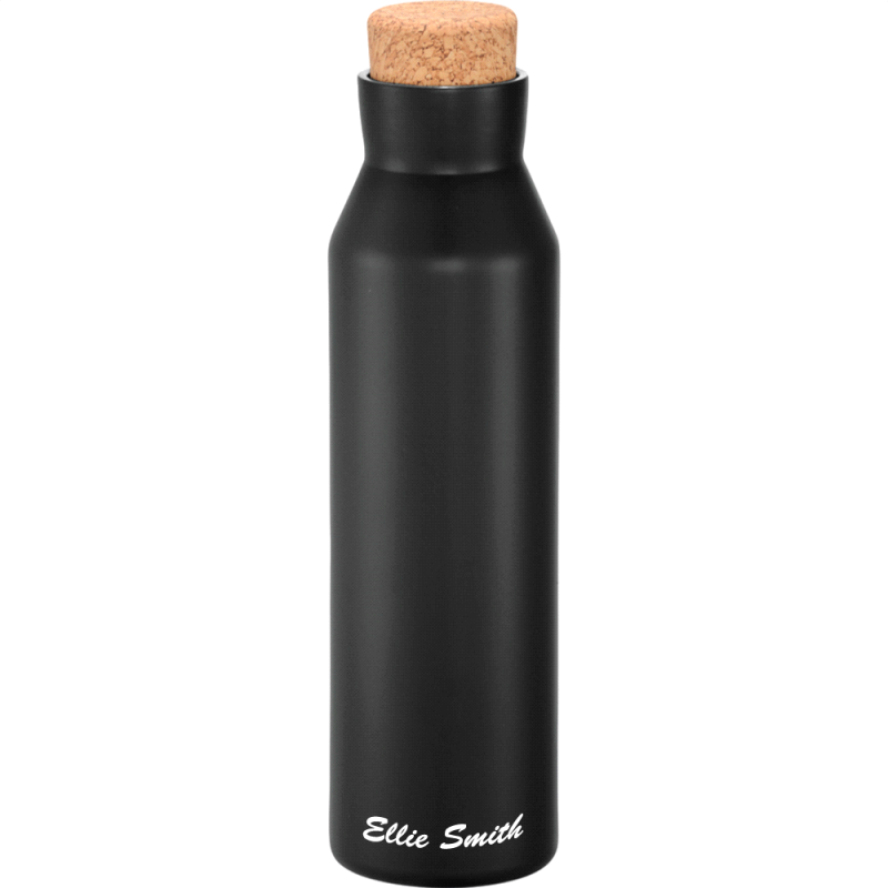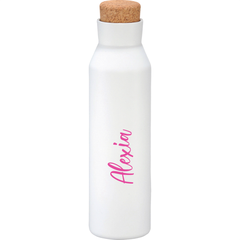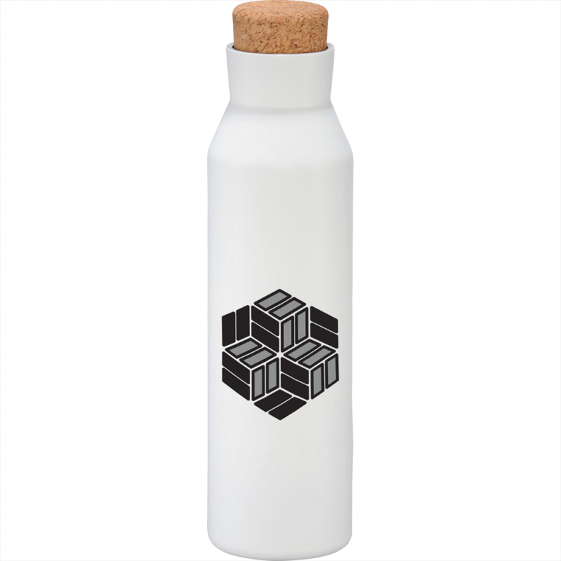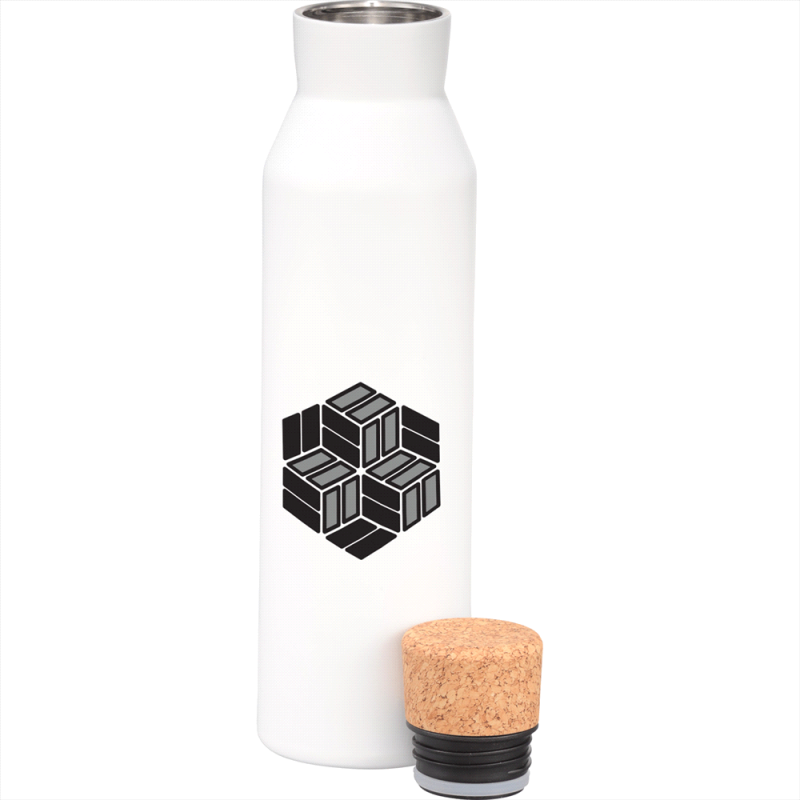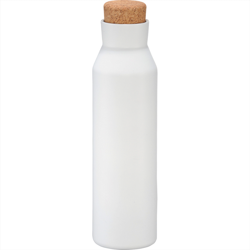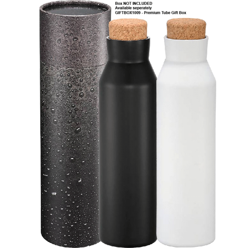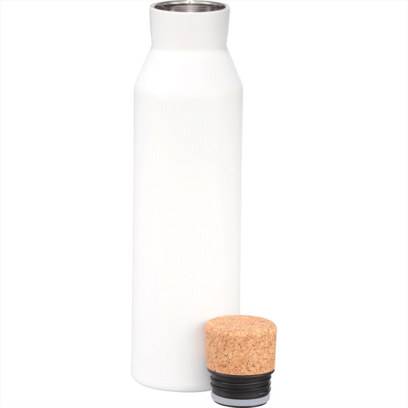 Deluxe 600ml stainless steel drink bottle that is vacuum insulated with a sleek design and a smart painted finish. It is BPA-free and features a secure stainless-steel screw-on lid which features a white polypropylene trim. It can be presented in a kraft gift box. The bottle is not dishwasher safe, and handwashing is recommended.